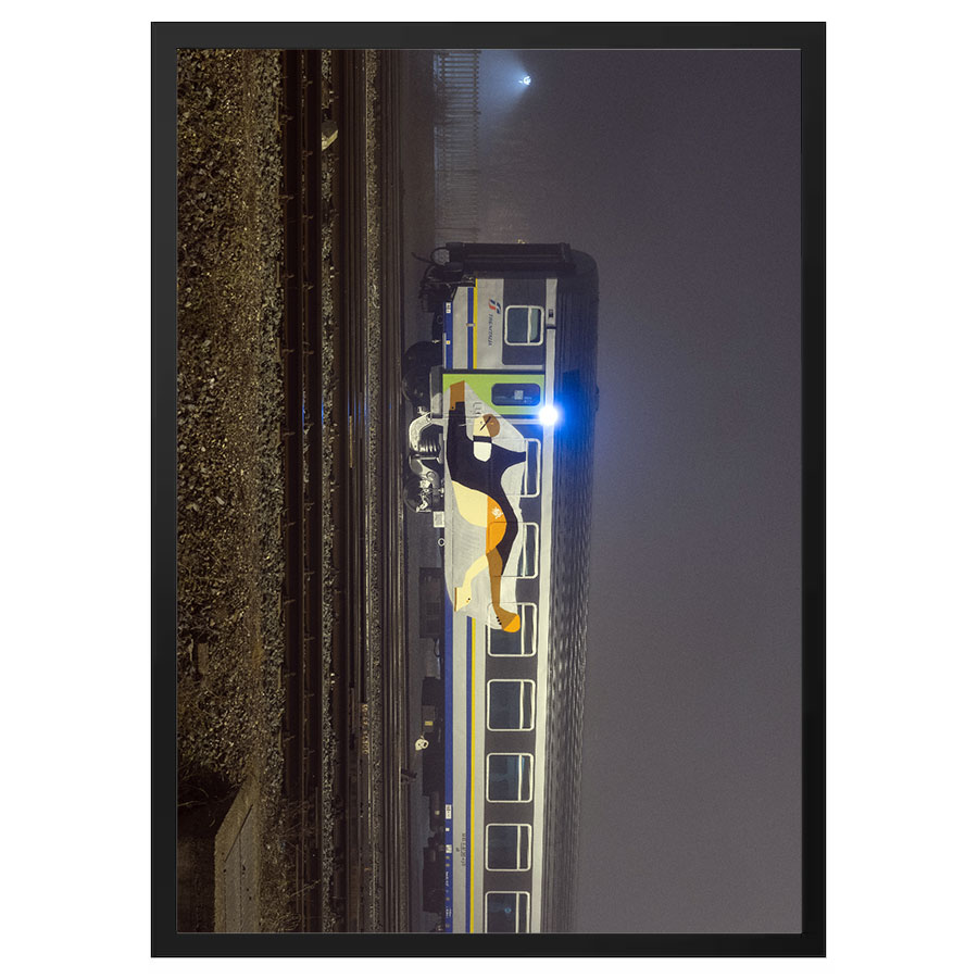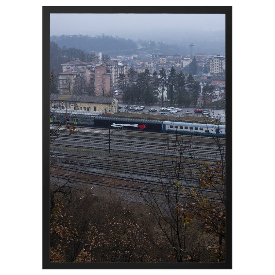 2,4 miliardi di anni fa i mari della terra si popolarono di cianobatteri, microrganismi che attraverso lafotosintesi immisero ossigeno nell’atmosfera: grazie a questo processo, il ferro presente negli oceani iniziòa depositarsi sui fondali dove si accumulò in rocce sedimentarie.Nella seconda metà del ‘700 la tecnologia acquisita durante la rivoluzione industriale rese possibilelo sfruttamento di quelle rocce e del carbone formatosi dai resti di animali e piante morti milioni di anniprima: combinando questi elementi si ottiene l’acciaio, materiale col quale si costruiscono i treni ed i binarisui quali corrono. Dagli anni ’40 del 1800 le reti ferroviarie si sviluppano in tutta Europa, modificandol’economia, il paesaggio urbano e le abitudini delle persone.William Turner nella sua opera “Pioggia, vapore e velocità” del 1844 ritrae un treno mentre attraversaun ponte sul Tamigi; il treno entra così nell’estetica del sublime dell’arte, oggetto artificiale capace diincantare le persone con un “orrore dilettevole” tanto quanto vedute bucoliche o paesaggi naturalimaestosi. Il treno affascina.Da bambino, mio nonno mi portava a fare brevi gite in treno: due o tre fermate per poi prendere unacoincidenza e tornare a casa. Da quel momento sono stato ammaliato dall’ambiente ferroviario. Hoiniziato a frequentare i depositi attratto magneticamente dalla loro luce, dal loro silenzio, dall’odore diruggine, nafta, grasso, dalla resistenza estrema degli animali e delle piante che li popolano, dal caloredelle fiancate metalliche dei treni.In questi luoghi mi perdo, mi abbandono al fluire di ciò che sono in quel momento ed in quel luogo.Divento azione e gesto, per esistere come colore sulla fiancata di un vagone, con forme alle volte studiate,altre volte frutto dell’improvvisazione, linee e campiture di colore figlie di quella circostanza.Con questi elementi ammanto le superfici dei convogli per diffondere la mia sostanza, è un’idea che cercadi appropriarsi fugacemente di uno spazio pubblico, di trasformarlo. Insiemi di linee per definire un’animomutevole, per creare vertigine, per confondere con colori psichedelici, capaci di trasportarmi altrove. Questa condotta è rivolta a me stesso, porta alla luce la mia natura più intima, non è perseguita perstupire i viaggiatori o i ferrovieri.Lo scatto documenta tutto questo, ma in realtà diventa l’opera che ho appena creato: non osservo ciòche dipingo, gli volto le spalle e camminando mi allontano, consapevole che il climax raggiunto rimarràunicamente in una fotografia, ideata insieme al dipinto di cui è parte integrante e che rappresenta il fineultimo del mio processo creativo.Nel momento in cui scatto la fotografia il treno è già pulito nella mia mente: le imprese di pulizieinterverranno per realizzare il futuro a cui i miei dipinti erano destinati.Mi capita di prendere il treno: lo aspetto impaziente sul marciapiede ed ogni volta si ravviva il mio fascinoper esso. Osservo il convoglio che si avvicina, che scorre di fronte ai miei occhi pulito e quando tutto èstato cancellato un profondo senso di pace mi pervade.Non mi interessa la permanenza dell’arte, ma piuttosto la sua scomparsa, l’oblio e la dimenticanza incontrapposizione alla vitalità dell’azione che con la sua impellenza ossessiva mi porta a ripetere questoprocedimento.La livrea del treno tornerà a dominare, piccoli segni di vernice rimarranno, ma sarà l’immagine aziendaledella compagnia di trasporti a solcare il paesaggio della provincia italiana.L’ultima fase del percorso artistico è dominata dall’elemento del fuoco, altra scoperta che ha rivoluzionatola storia dell’uomo. Ha una forza distruttiva che risveglia paure ancestrali, ma rappresenta anche unaforza della natura che si può utilizzare per creare. Prima di uscire dal deposito, le fiamme divorano i foglidi carta con i bozzetti preparatori, luce abbagliante nella notte buia, forza distruttrice che elimina ciò cherimane di tangibile della mia creazione.